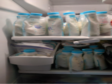 Pumped and frozen breast milk stored safely for later use.